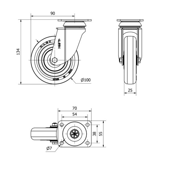 Rueda goma giratoria Alex diametro 100 mm. 2-2815