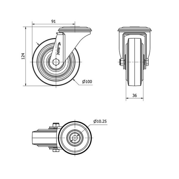 Rueda goma giratoria Alex diametro 100 mm. 2-3762