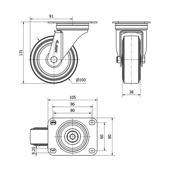 Rueda goma giratoria Alex diametro 100 mm. 2-4431