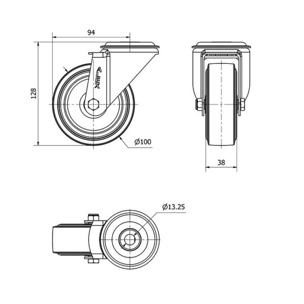 Rueda goma giratoria Alex diametro 100 mm. 2-4442