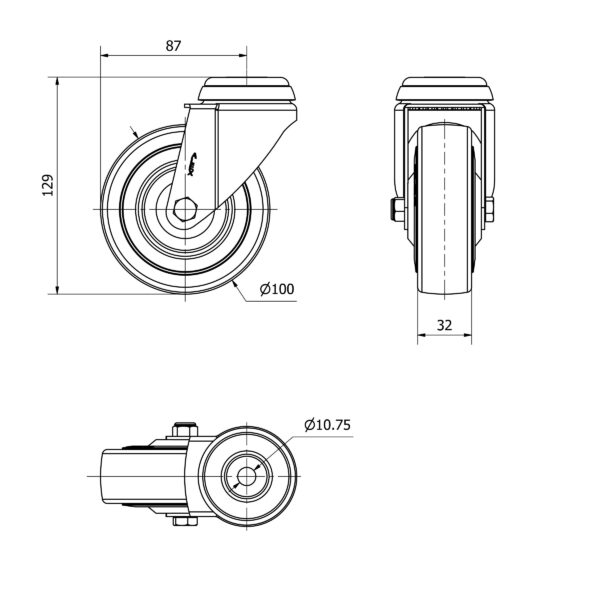 Rueda goma giratoria Alex diametro 100 mm. 2-4595