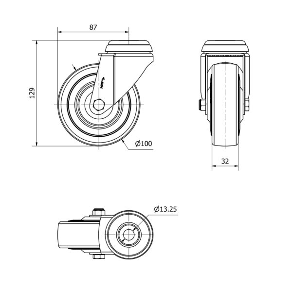 Rueda goma giratoria Alex diametro 100 mm. 2-4597