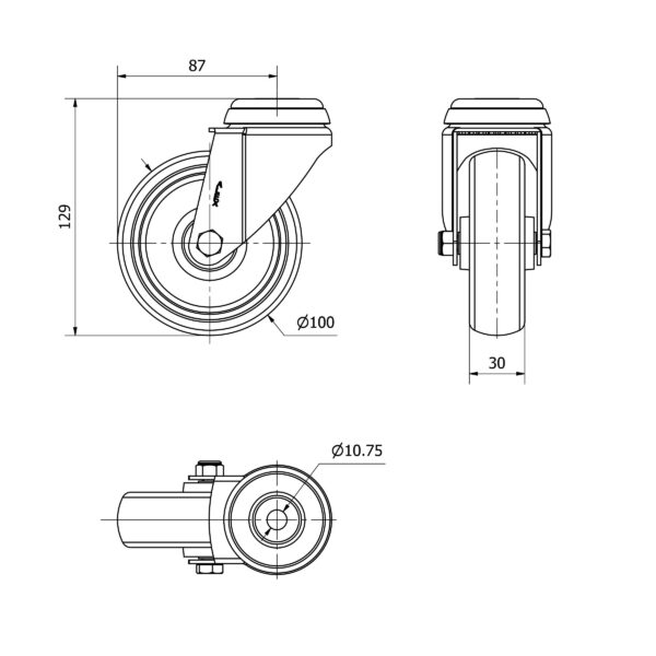 Rueda goma giratoria Alex diametro 100 mm. 2-4611