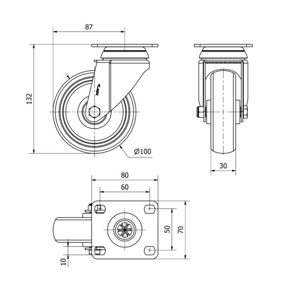 Rueda goma giratoria Alex diametro 100 mm. 2-4617