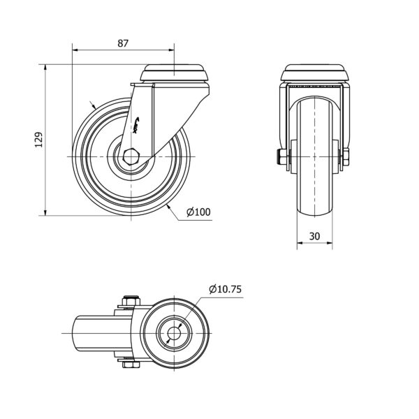 Rueda goma giratoria Alex diametro 100 mm. 2-4619