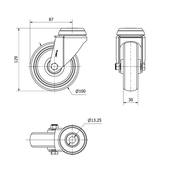 Rueda goma giratoria Alex diametro 100 mm. 2-4621