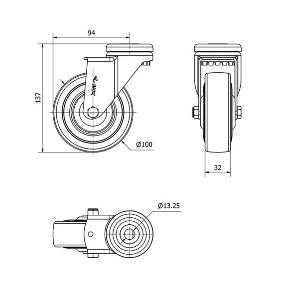 Rueda goma giratoria Alex diametro 100 mm. modelo 2-0265