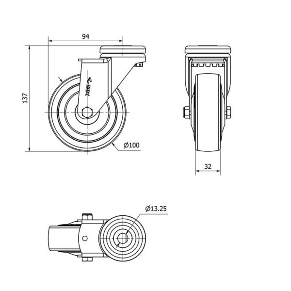 Rueda goma giratoria Alex diametro 100 mm. modelo 2-1132