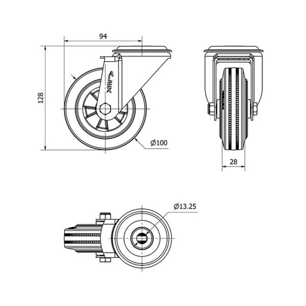 Rueda goma giratoria Alex diametro 100 mm. modelo 2-1676