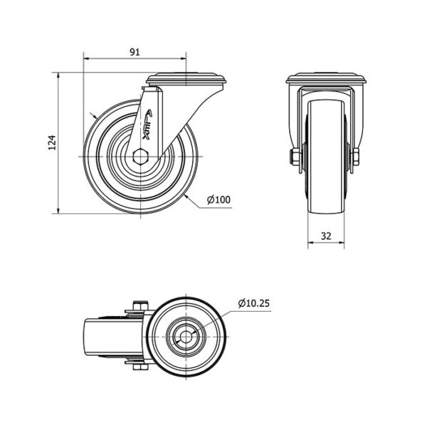Rueda goma giratoria Alex diametro 100 mm. modelo 2-1830