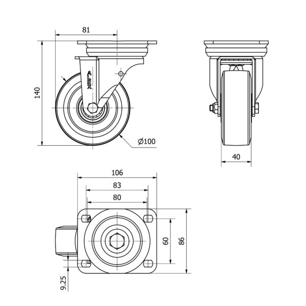 Rueda goma giratoria Alex diametro 100 mm. modelo 2-2194