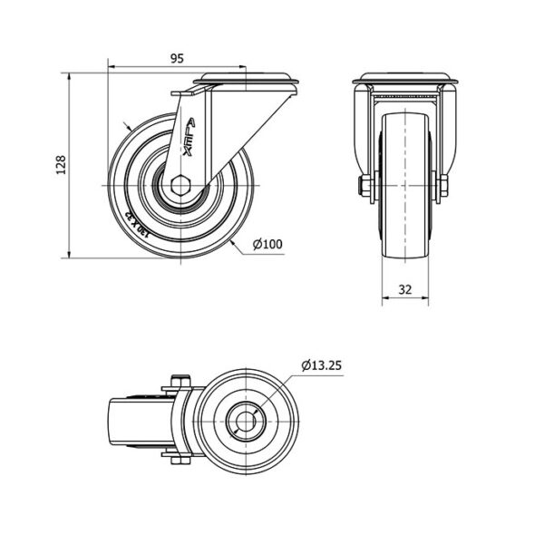 Rueda goma giratoria Alex diametro 100 mm. modelo 2-2405