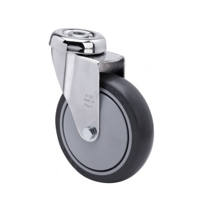 La serie de ruedas Alex A-PGAIB son ruedas con núcleo de poliamix y banda de goma gris termoplástica, indicadas para soportar cargas hasta 100 Kg.. Se utilizan en salas de operaciones, quirófanos, camas, usos hospitalarios y restauración. PGAIB: Silenciosa y absorbe las vibraciones. No dejan huella en los pavimentos. Fácil desplazamiento.
