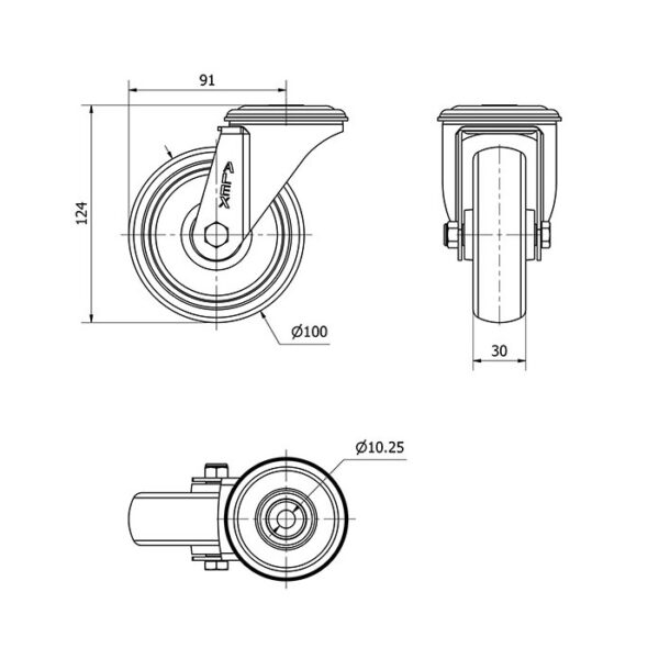 Rueda goma giratoria Alex diametro 100 mm. modelo 2-3243