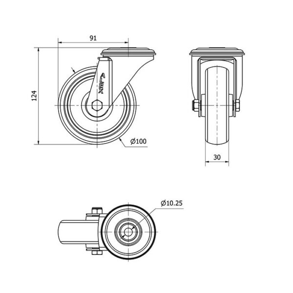 Rueda goma giratoria Alex diametro 100 mm. modelo 2-3293