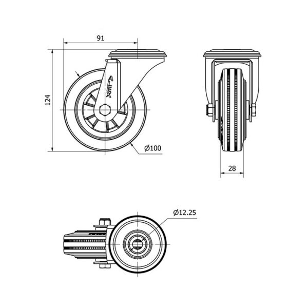 Rueda goma giratoria Alex diametro 100 mm. modelo 2-4089