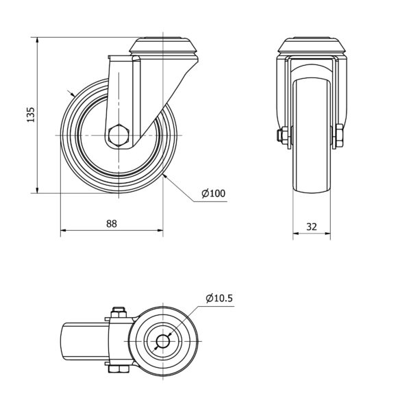 Rueda goma giratoria Alex diametro 100 mm. modelo TW0073
