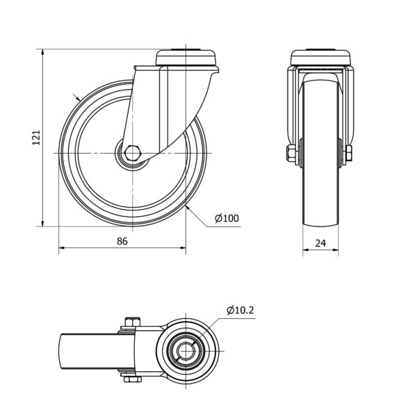 Rueda goma giratoria Alex diametro 100 mm. modelo TW0244