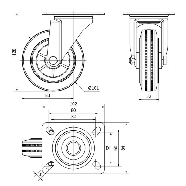 Rueda goma giratoria Alex diametro 100 mm. modelo TW0254