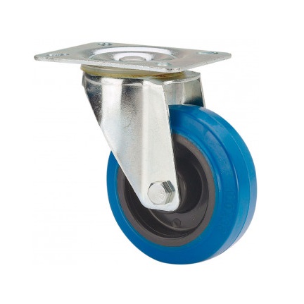 Rueda goma giratoria Alex diametro 100 mm. modelo TW0039 EAN 8422202000398 n nHOJA TECNICA n nLa serie de ruedas Alex Twin Lex serie 121 son ruedas de goma elástica azul, indicadas para soportar cargas de hasta 130 Kg. Se utilizan en carros de herramientas, carros tubulares, logística interna, carros de transporte de alimentación, cocinas, cantinas, comedores, supermercados, contenedores, jaulas de transporte, cajas de sonido y gradas móviles. TWIN-LEX 121: No manchan el suelo, gran absorción de golpes y vibraciones. Ruedas suaves, silenciosas y elásticas.