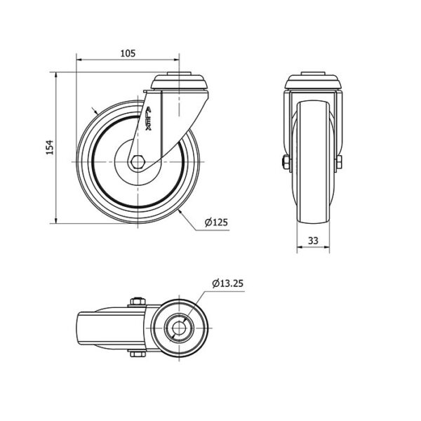Rueda goma giratoria Alex diametro 125 mm. 2-1137