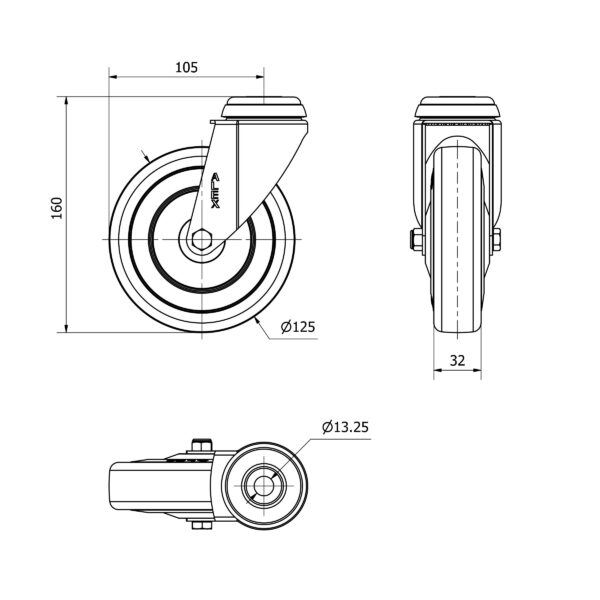Rueda goma giratoria Alex diametro 125 mm. 2-4591