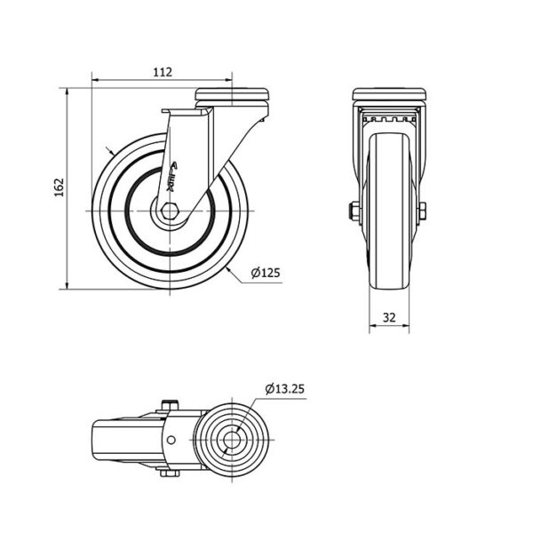 Rueda goma giratoria Alex diametro 125 mm. modelo 2-1133