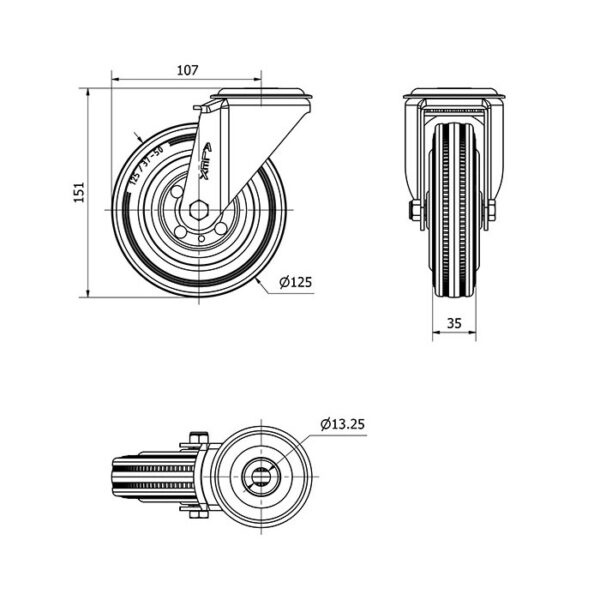 Rueda goma giratoria Alex diametro 125 mm. modelo 2-1391