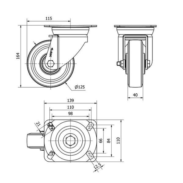 Rueda goma giratoria Alex diametro 125 mm. modelo 2-1992