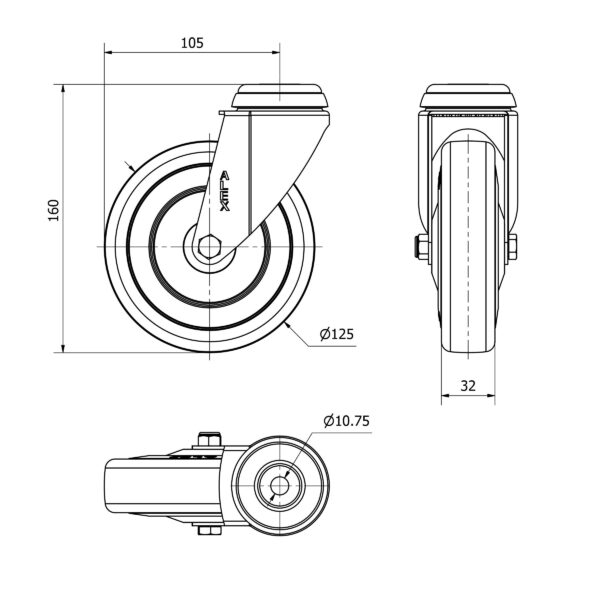 Rueda goma giratoria Alex diametro 125 mm. modelo 2-2189