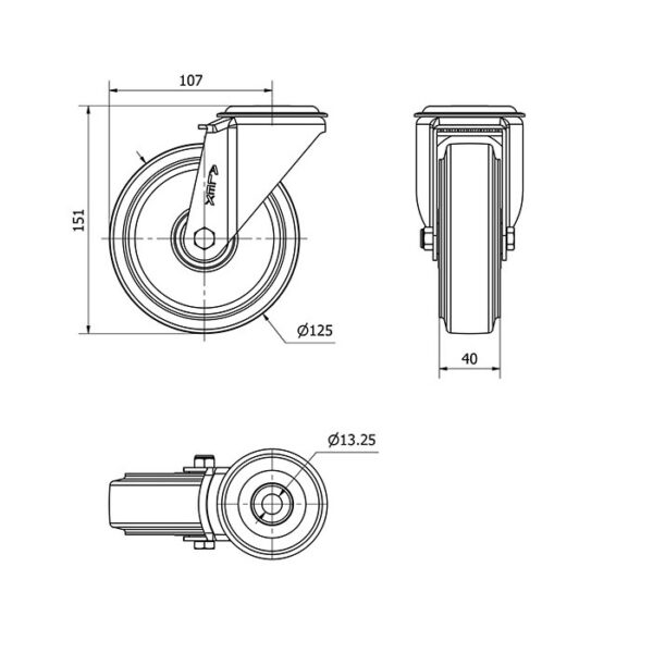 Rueda goma giratoria Alex diametro 125 mm. modelo 2-2795