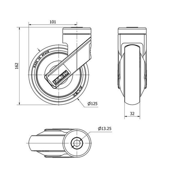 Rueda goma giratoria Alex diametro 125 mm. modelo 2-4639