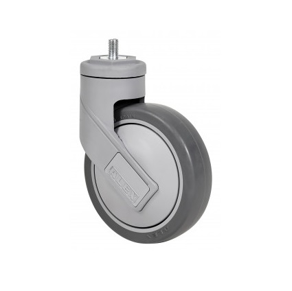 La serie de ruedas Alex HC-PGAIB son ruedas de goma termoplástica gris inyectada, con soporte fabricado en poliamida de alta calidad endurecida con fibra de vidrio, cabezal giratorio superior construido en doble hilera de bolas endurecidas (fijación placa y agujero pasante) y cojinete de bolas de precisión insertado (fijación espiga roscada), indicadas para soportar cargas hasta 100 Kg. Se utilizan en mobiliario clínico-sanitario, salas de operaciones, quirófanos, camas, usos hospitalarios, restauración y cocinas. PGAIB: Silenciosa, absorbe las vibraciones, no deja huella en los pavimentos y de fácil desplazamiento.