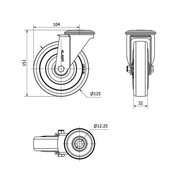 Rueda goma giratoria Alex diametro 125 mm. modelo 2-4851