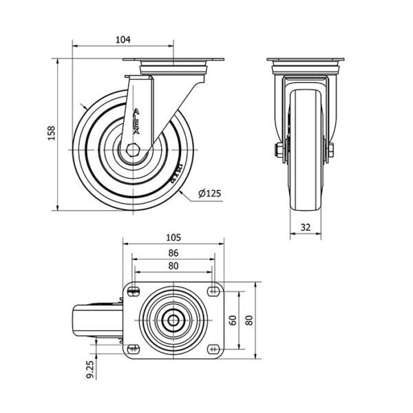 Rueda goma giratoria Alex diametro 125 mm. modelo 2-4928
