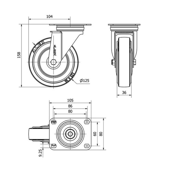 Rueda goma giratoria Alex diametro 125 mm. modelo 2-4973