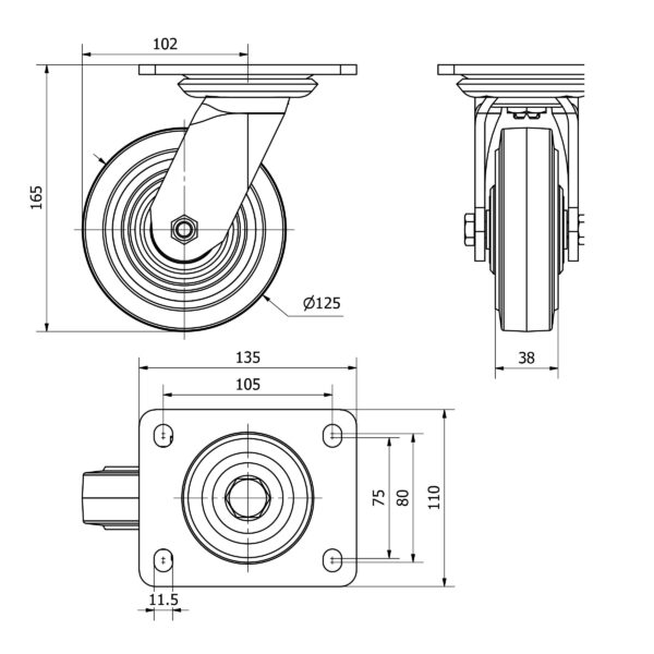 Rueda goma giratoria Alex diametro 125 mm. modelo 4-0791