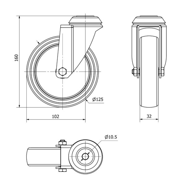 Rueda goma giratoria Alex diametro 125 mm. modelo TW0074
