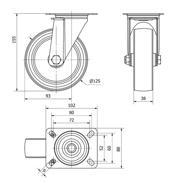 Rueda goma giratoria Alex diametro 125 mm. modelo TW0222 EAN 8422202002224