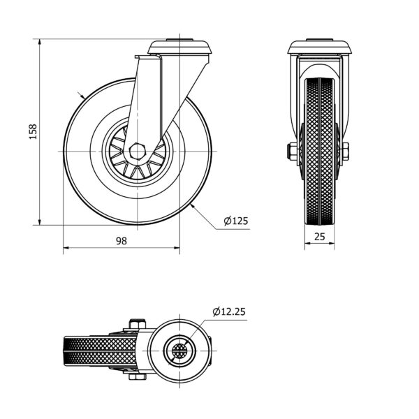 Rueda goma giratoria Alex diametro 125 mm. TW0091