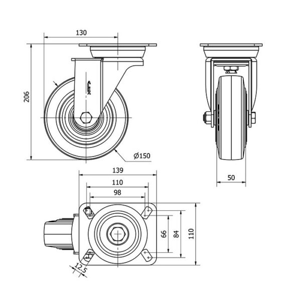 Rueda goma giratoria Alex diametro 150 mm. 2-0535