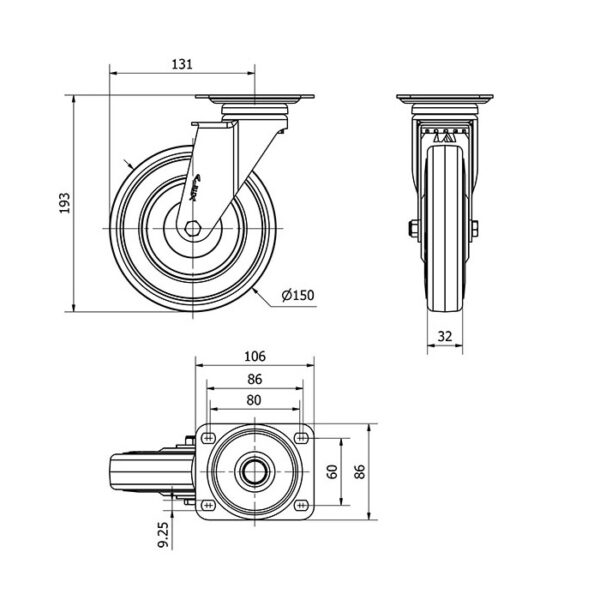 Rueda goma giratoria Alex diametro 150 mm. modelo 2-1227 EAN 8422202212272