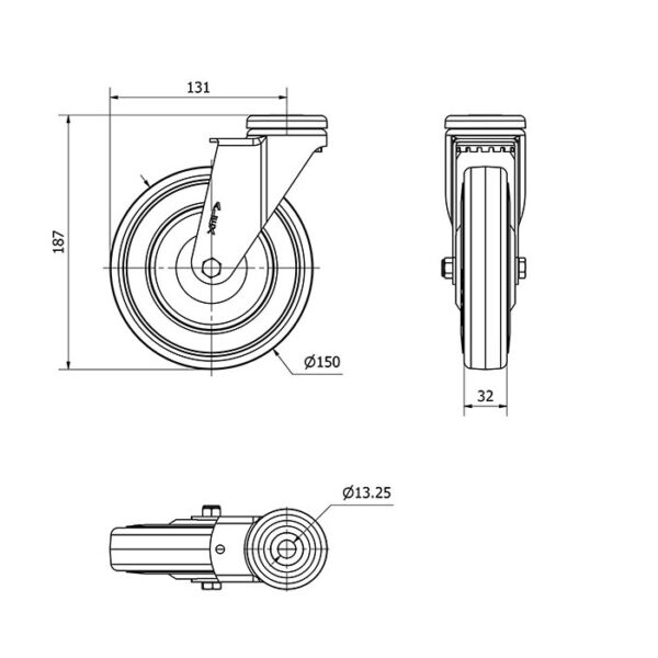 Rueda goma giratoria Alex diametro 150 mm. modelo 2-1238