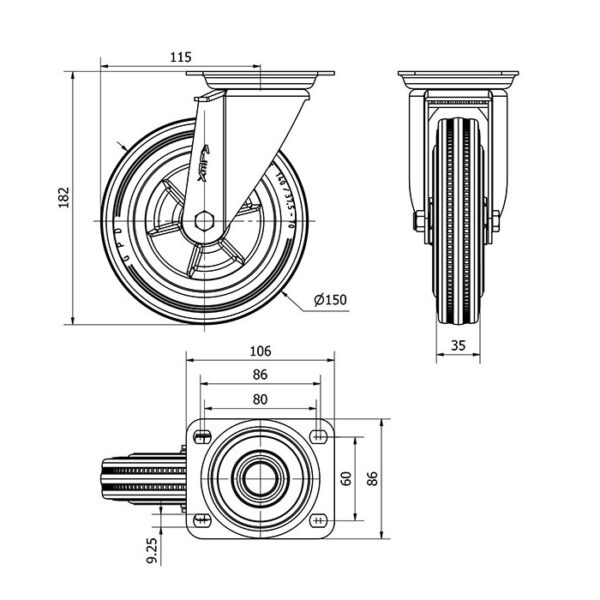 Rueda goma giratoria Alex diametro 150 mm. modelo 2-2885
