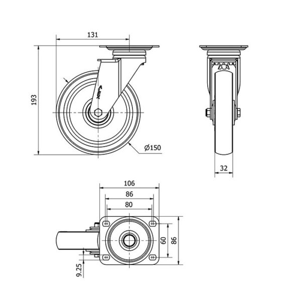 Rueda goma giratoria Alex diametro 150 mm. modelo 2-3578 EAN 8422202235783