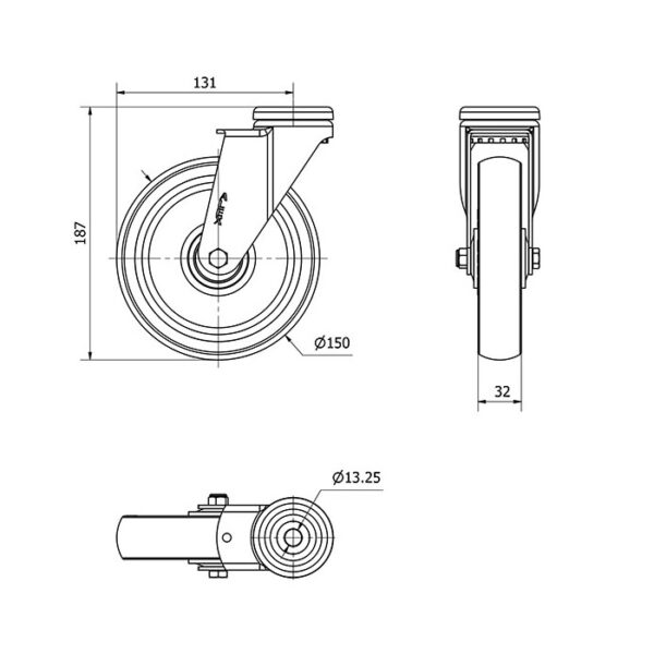 Rueda goma giratoria Alex diametro 150 mm. modelo 2-3581