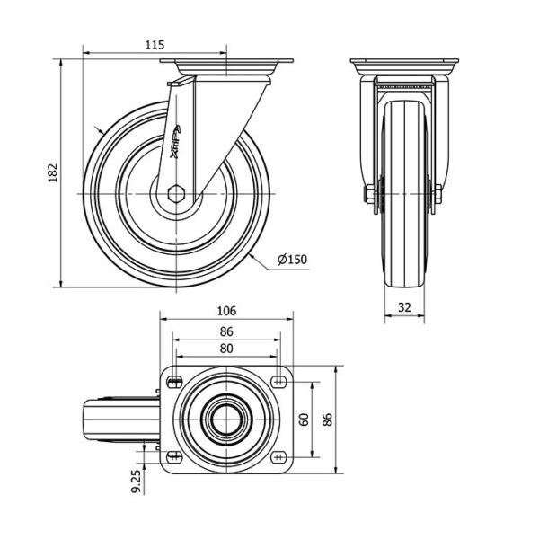 Rueda goma giratoria Alex diametro 150 mm. modelo 2-4347