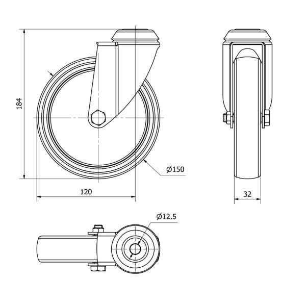 Rueda goma giratoria Alex diametro 150 mm. TW0251