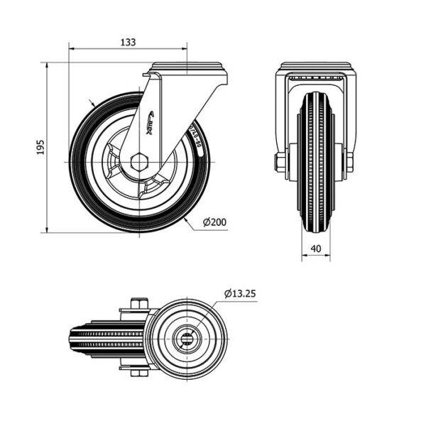 Rueda goma giratoria Alex diametro 160 mm. 2-4756
