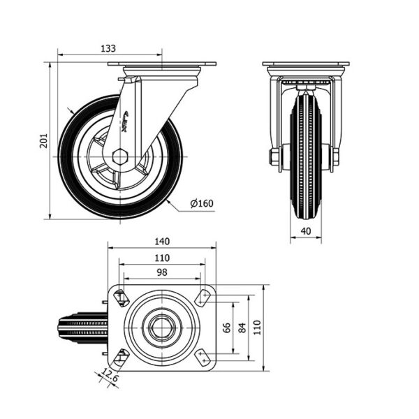 Rueda goma giratoria Alex diametro 160 mm. modelo 2-0864